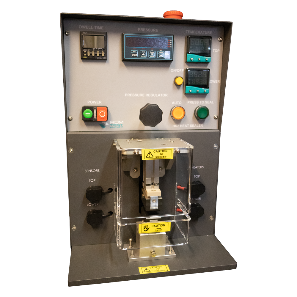 HS-2 is a precision Heat Sealer, ideal for preparation of heat seals for seal strength testing in heatsealable flexible packaging materials (plastics, papers, compostables) to determine optimum sealing parameters of temperature, pressure and dwell time.